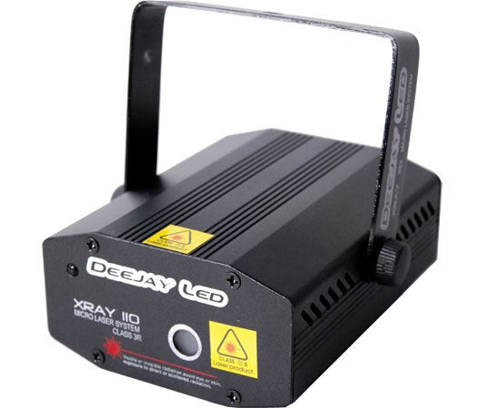 The Xray 110 Micro Laser System from DeeJay LED is a Red/Green, laser effects light for entertainment venues. The Xray 110 has an overlapping multi-point, white-centered star effect in red, green, red/green or varied hues resulting from mixing the 2 colors. The multi-voltage Xray 110 can be used anywhere in the world and ships with a tapped tilting yoke for mounting.