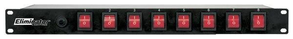 The E-107 is a reliable rack mount power center. This unit has 8 lighted switches that control 8 individual sockets on the rear of the unit. When a power switch is glowing the power outlet on the rear of the unit that matches the switch will be active. The unit can handle a maximum of 15 amps. The unit is protected by a 15 amp breaker on the rear of the unit. If the switches do not turn on reset the breaker in the rear.