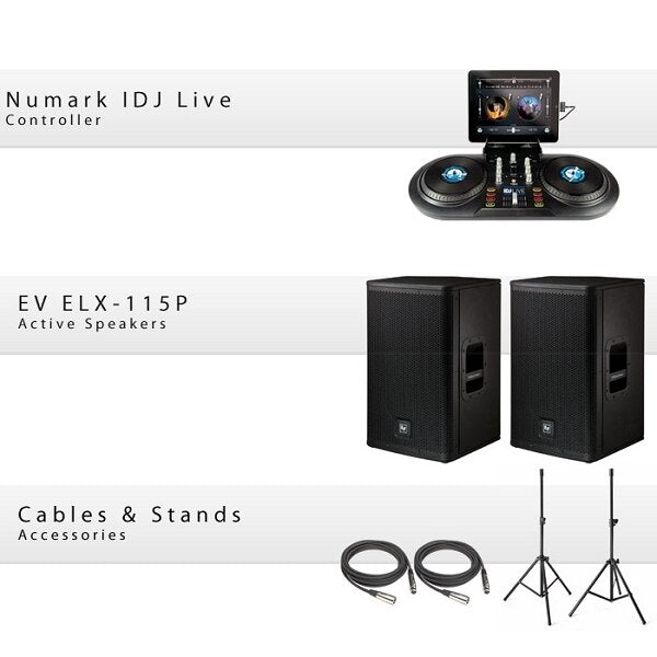 One Numark iDJ LiveEV ELX 115pTwo CablesTwo Speaker Stands