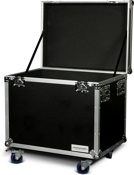 The Marathon MA-TUT2230W Flight Touring Utility Trunk Case (Black) is a laminated 9mm plywood case with foam lined interior made to hold accessories and lighting equipment. The case meets ATA 300 specifications for transit cases. The case has recessed butterfly latches with easy locking fit and tongue, recessed spring-action handles and a caster board with 4 wheels. There are heavy, powerful ball corners and dual anchor rivets.