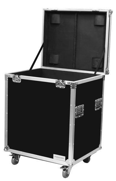 The Marathon MA-TUT25W Flight Touring Utility Trunk Case (Black) is a laminated 1/2" plywood case with foam lined interior made to hold accessories and lighting equipment. The case meets ATA 300 specifications for transit cases. The case has a recessed butterfly latches with easy locking fit and tongue, a recessed spring-action handles and tough caster wheels. There are heavy and powerful ball corners and dual anchor rivets.