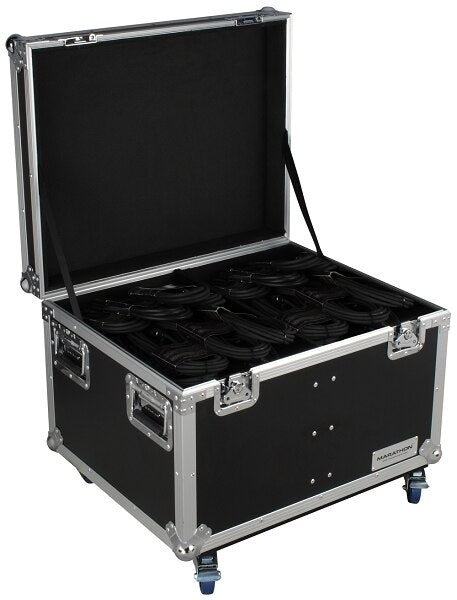 The Marathon MA-TUT271822W Flight Touring Utility Trunk Case (Black) is a laminated 9.0mm plywood case with foam lined interior made to hold accessories and lighting equipment. The case meets ATA 300 specifications for transit cases. The case has recessed butterfly latches with easy locking fit and tongue, recessed spring-action handles and caster board with 4 wheels. There are heavy, powerful ball corners and dual anchor rivets.