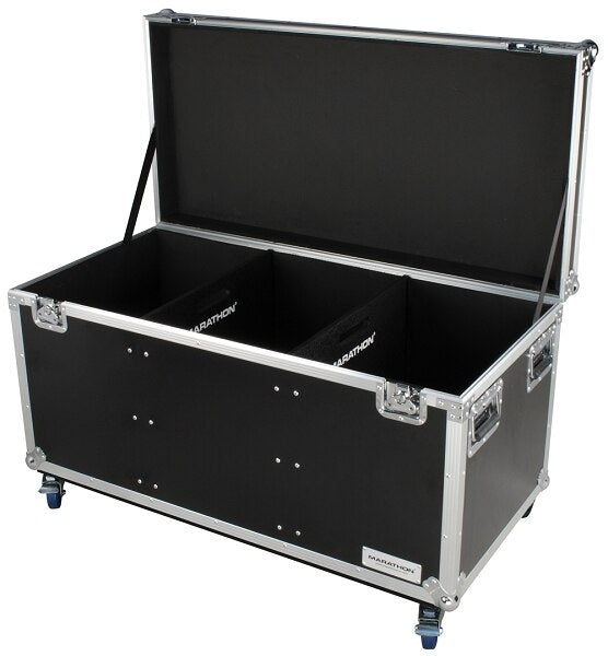 The Marathon MA-TUT442722W Flight Touring Utility Trunk Case (Black) is a laminated 9.0mm plywood case with foam lined interior made to hold accessories and lighting equipment. The case meets ATA 300 specifications for transit cases. The case has recessed butterfly latches with easy locking fit and tongue, recessed spring-action handles and caster board with 4 wheels. There are heavy, powerful ball corners and dual anchor rivets.