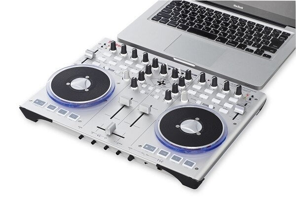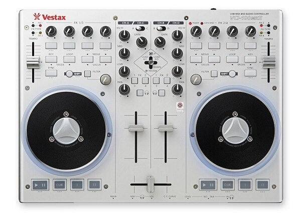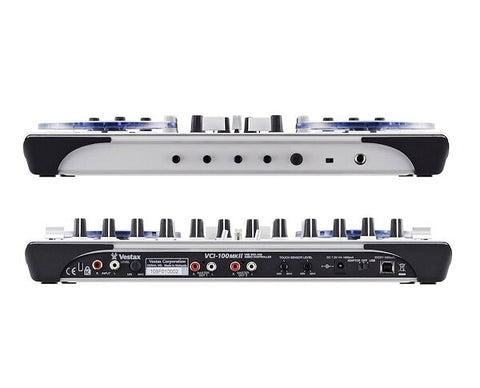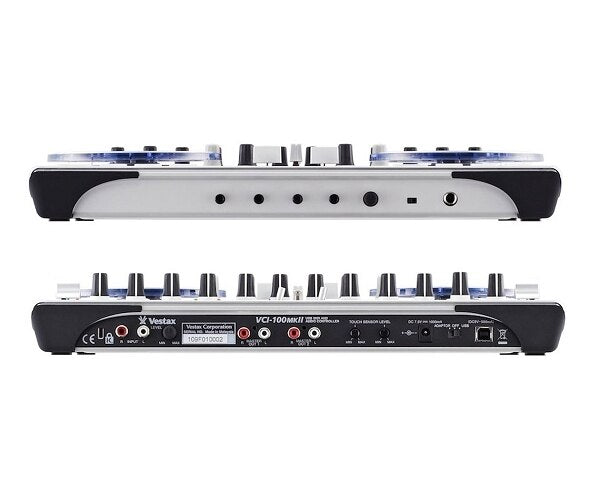 The Vestax VCI-100 USB MIDI DJ Controller is a lightweight, professional DJ control surface and audio USB interface with Traktor LE DJ software included. Easily control up to 4 virtual decks with up to 128 assignable controllers and 2 lightweight, large jog-wheels with torque and pulse control for optimum feel. The VCI-100 features 2 audio inputs for connecting an additional CD deck, turntable, sampler, effects unit and more.