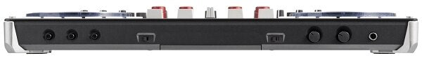 The compact and rugged construction is everything expected of Vestax, making the unit completely road worthy and capable of handling life in busy nightclub DJ booths. The controller is fitted with an array of assignable rotary encoders, torque & sensitivity adjustable jog wheels, mappable transport sections, and a sample / trigger section with 8 assignable pads per channel.