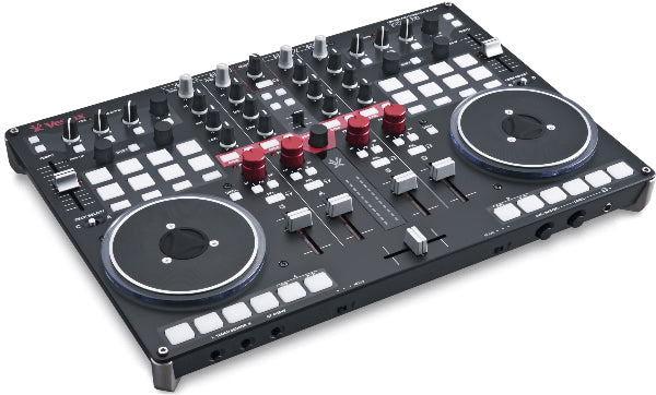 There are 4 level faders total, 2 are dedicated to digital audio from software and the remaining control input audio from external decks, making it possible to mix audio from computers and hardware decks during a set. Serato DJ Intro & Virtual DJ LE are included, and additional features include, bright input LED metering, dedicated filter knobs, and smooth pitch controls.