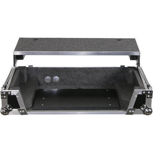 The Oddessy Innovations Design FZGSMIXDECKGT ATA Flight Zone Case (Chrome on Black) is designed to transport and protect a Numark MixDeck Universal DJ Station. The case is made from ABS plastic laminated over 3/8" plywood with high-density bevel foam interior. The case meets ATA 300 requirements for transit cases. The case has removable front access V-Cut panels. There is a full width Glide Style platform that can hold a laptop or music gear and a pullout Glide Tray for an optional keyboard. It also has recessed butterfly latches, recessed, spring-loaded handles and heavy-duty ball corners. This case has a limited lifetime warranty. Note! It is not recommended to transport the laptop or music gear inside the case.