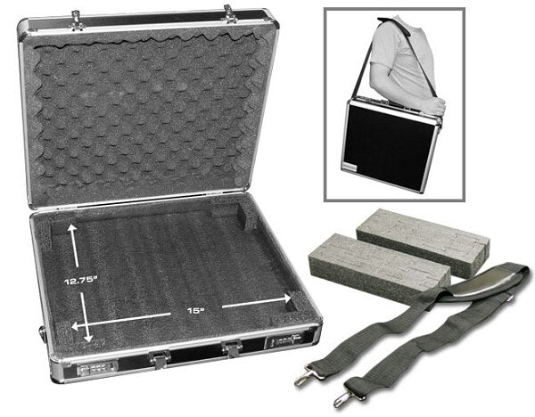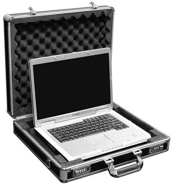 • Lightweight steel laminated to plywood case with diced foam on the bottom and convoluted foam in the lid, made to hold a laptop computer up to 17"