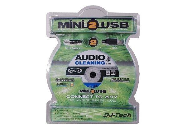 Mini-2-USB allows you easily connect any tape, mixer, or line-level audio to USB port for stereo recording. The Mini-2-USB audio cable outputs studio quality 16-bit, 44.1 kHz digital audio with its internal high resolution analog-to-digital conversion system. Just plug-and-play MINI-2-USB to your Mac or PC for easy and high quality USB audio recording solution.