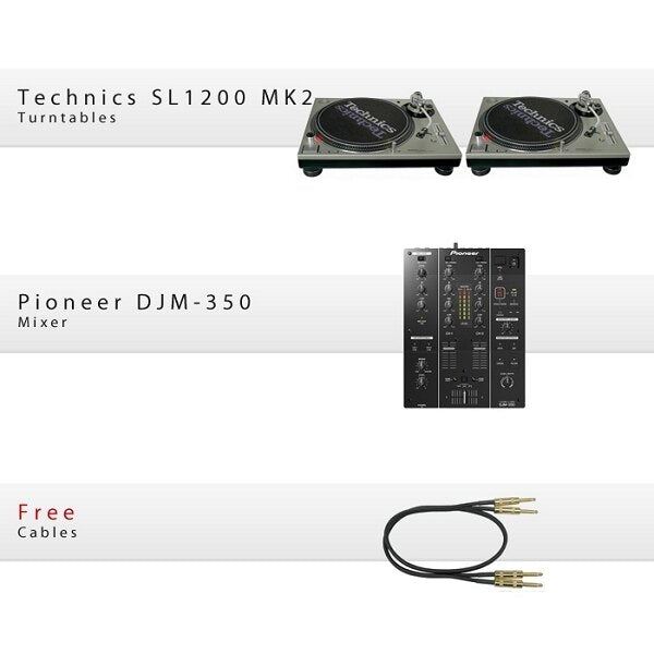 Two Technics SL-1200 mk2Pioneer DJM-350Free Cables